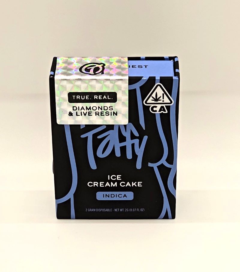 Taffy 2G Disposable – Ice Cream Cake (Indica), a premium THC vape crafted for users who want rich dessert flavor, ultra-smooth vapor, and heavy body relaxation. Packed with 2 full grams of diamond-infused live resin oil, this disposable delivers sweet, creamy terpenes with fast-acting effects that melt stress away.